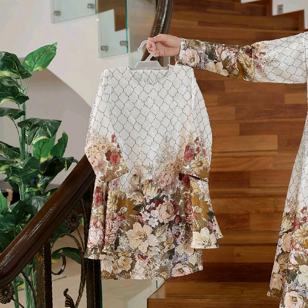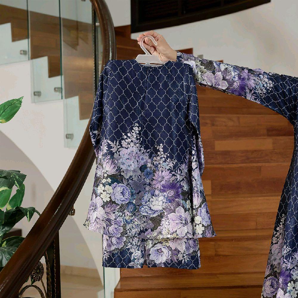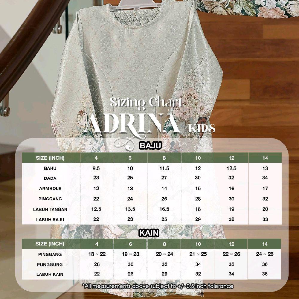 Premium jacquard Adrina Kids Kurung with shimmery floral and geometric patterns. Comfortable yet elegant for your child's special occasions.