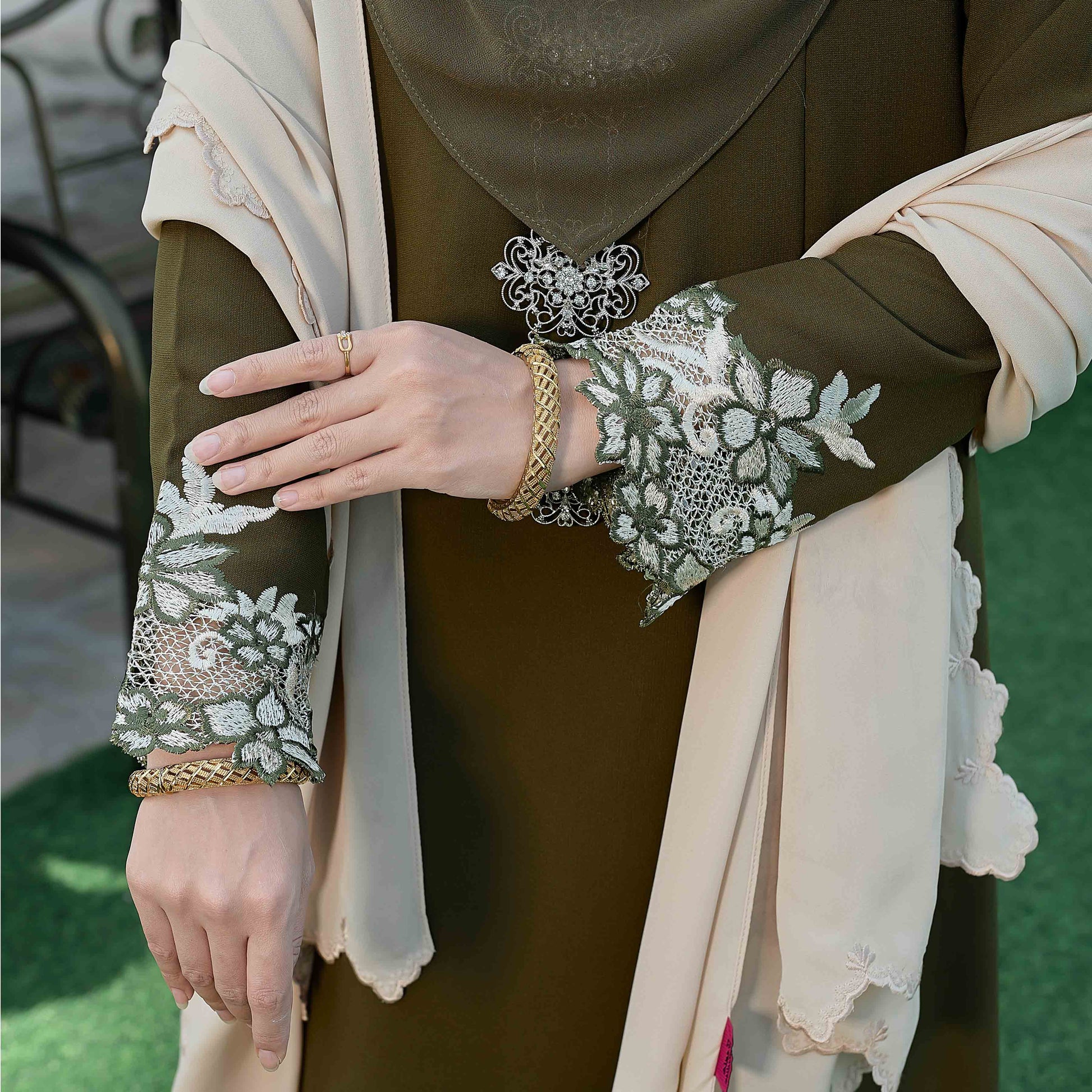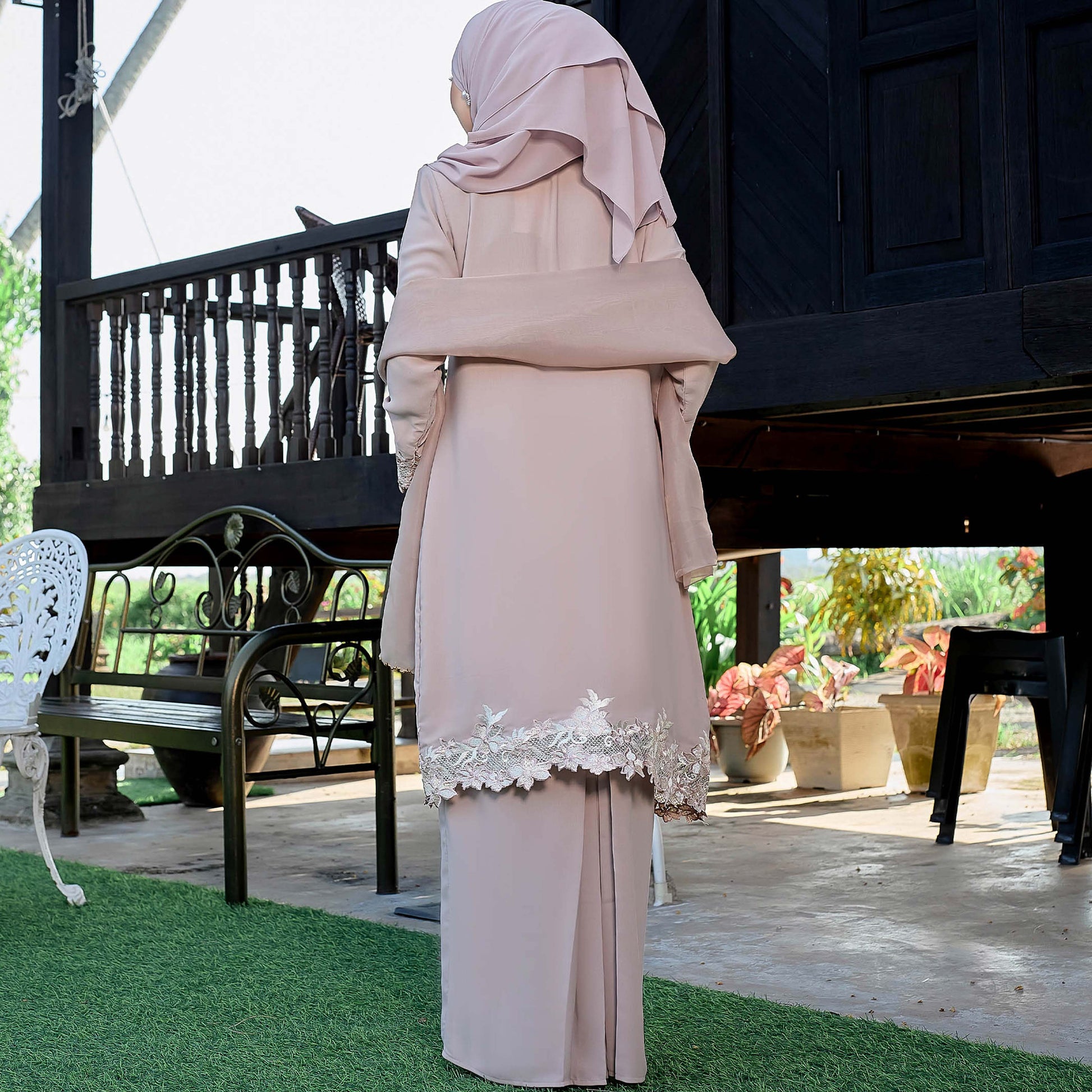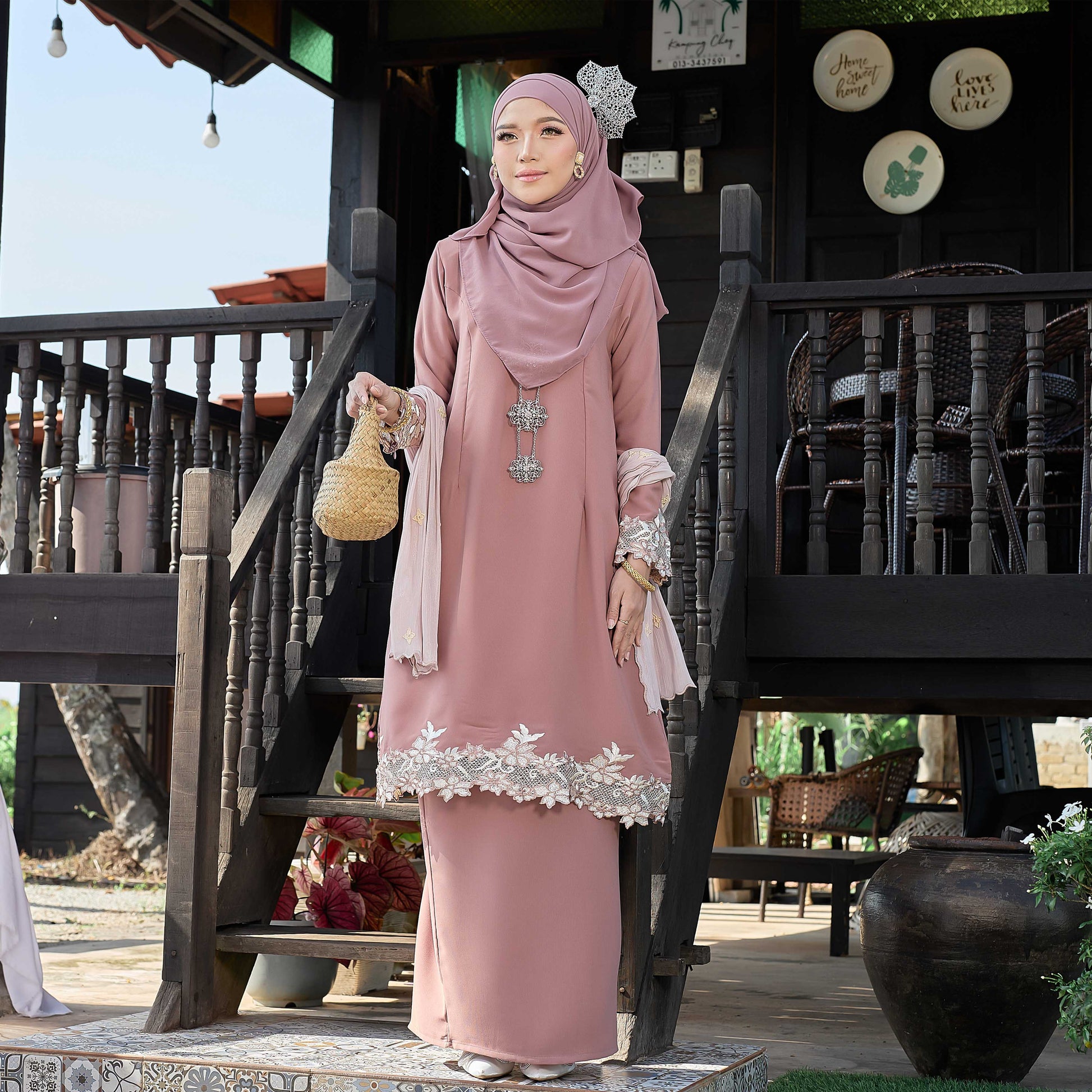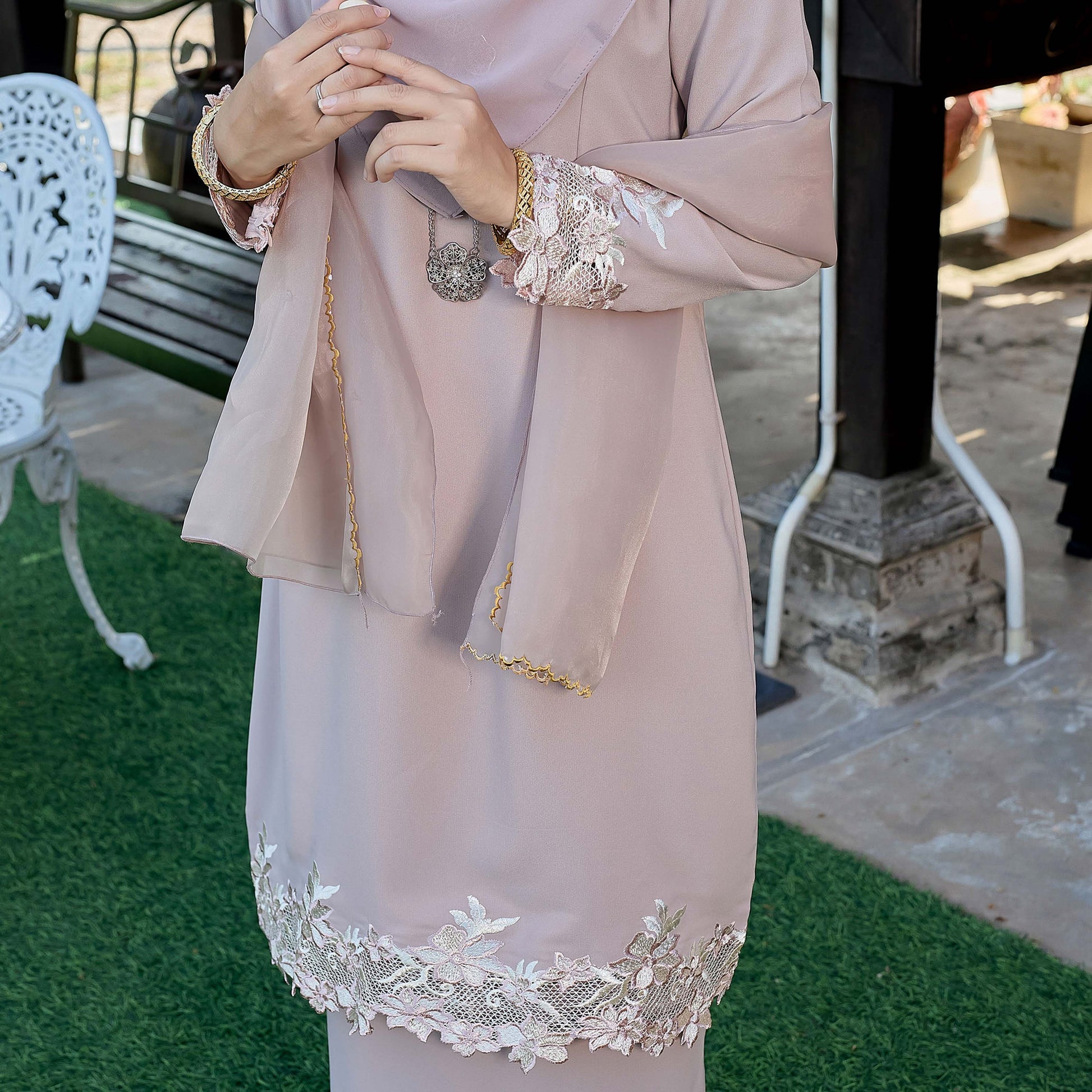 The Che Salma Kurung features premium Fusan embroidery with elegant floral details. This timeless traditional attire is perfect for special occasions while offering sophisticated craftsmanship.
