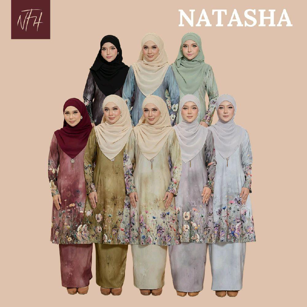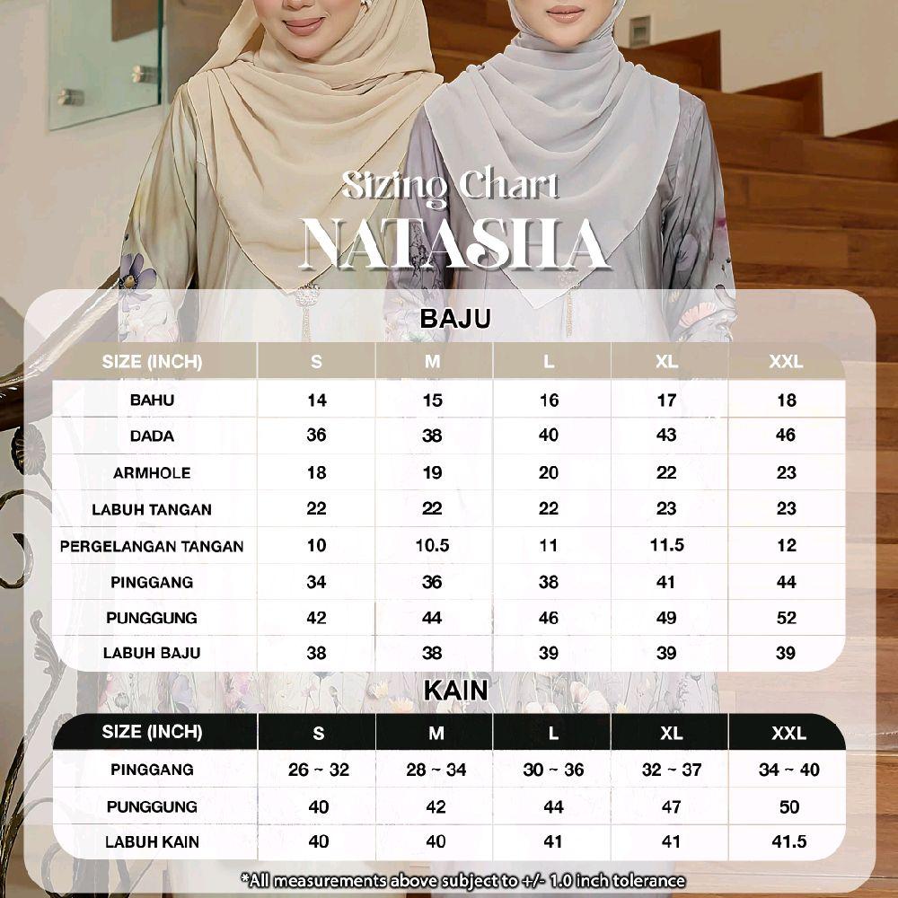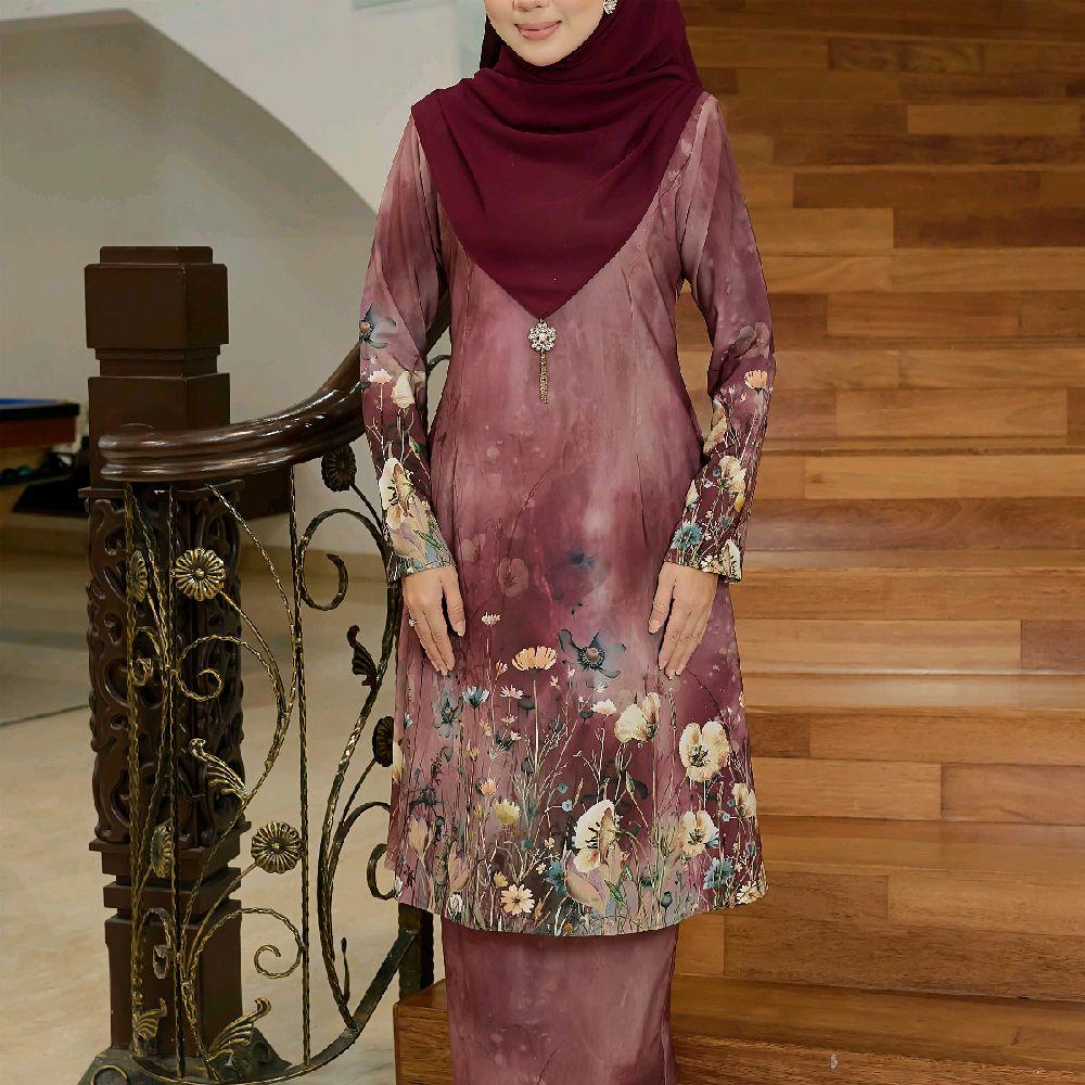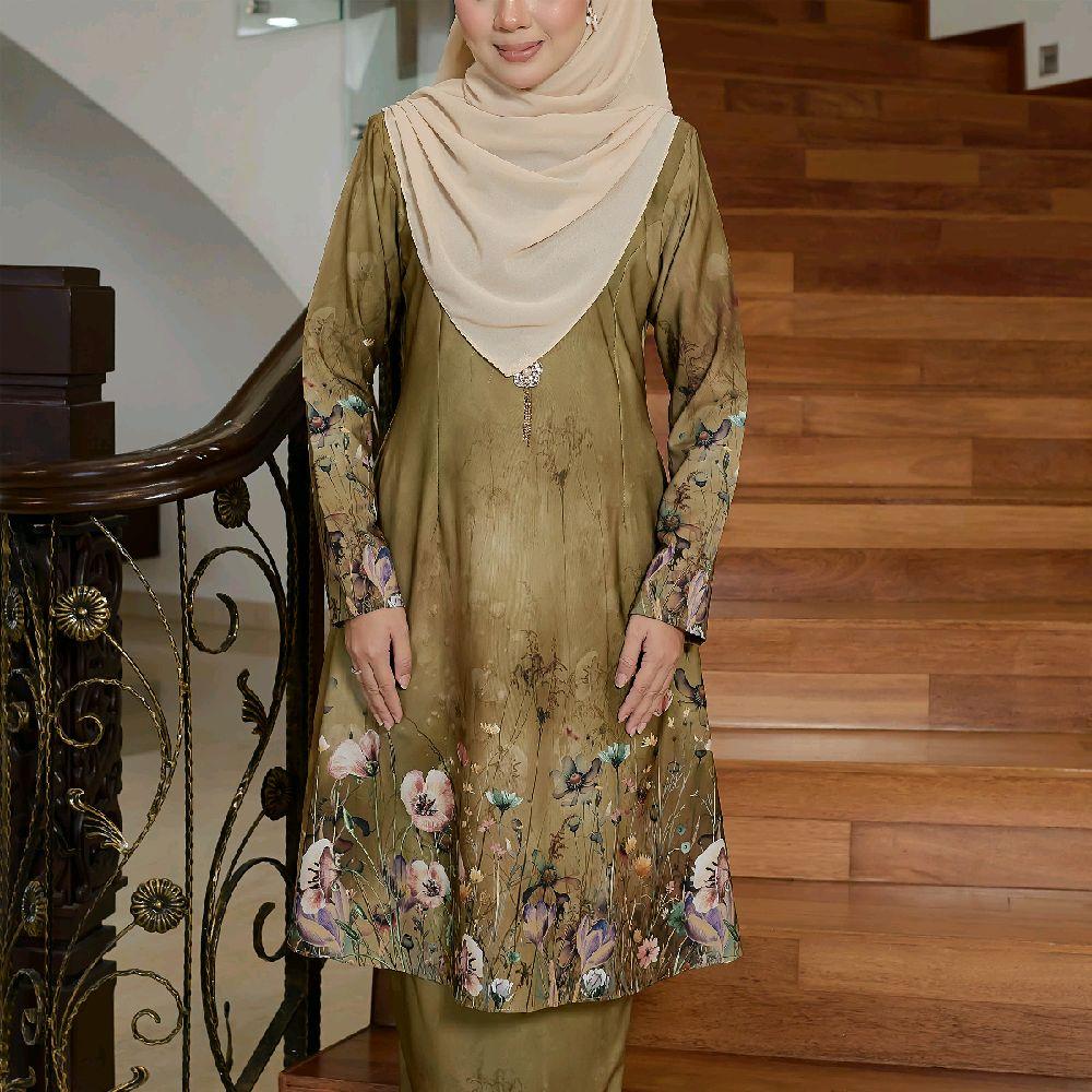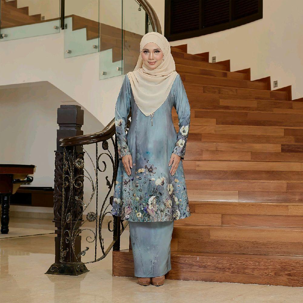 Crafted from Pokka silk, this Natasha Kurung features a daring floral print that will make you stand out from the crowd. The Susun Belakang skirt allows for easy movement, while the convenient chest and wrist zip closures make this outfit perfect for nursing and wudhu-friendly.