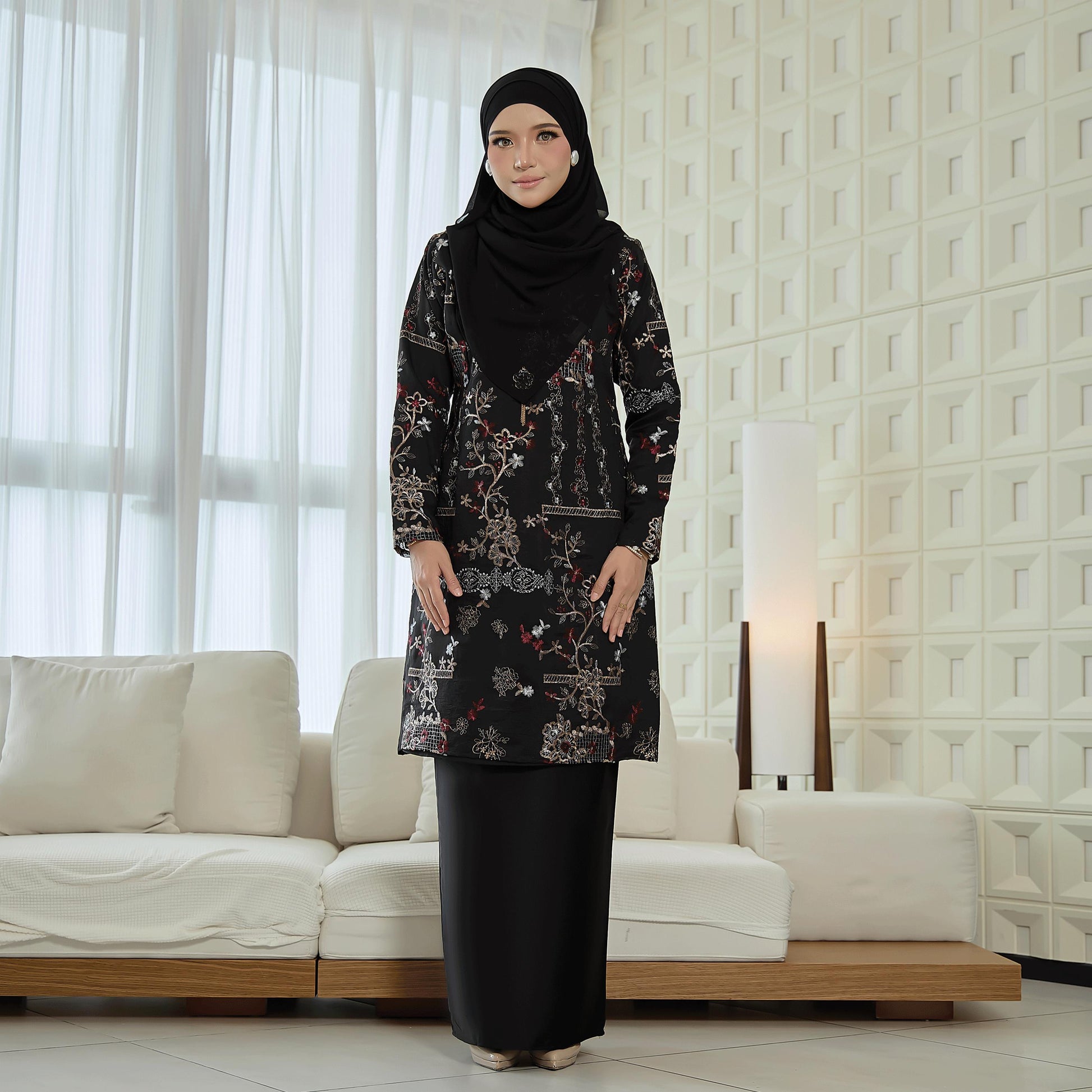 The Rosavelle Kurung features delicate floral embroidery on soft Tensilk and Sutera Luminous fabrics. It includes a susun belakang skirt for a smooth fit, plus chest and wrist zips for easy nursing and wudhu. A practical and elegant choice for traditional wear.