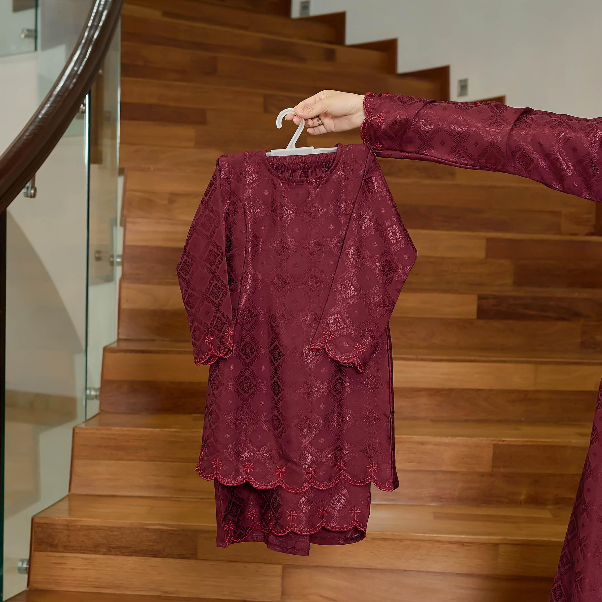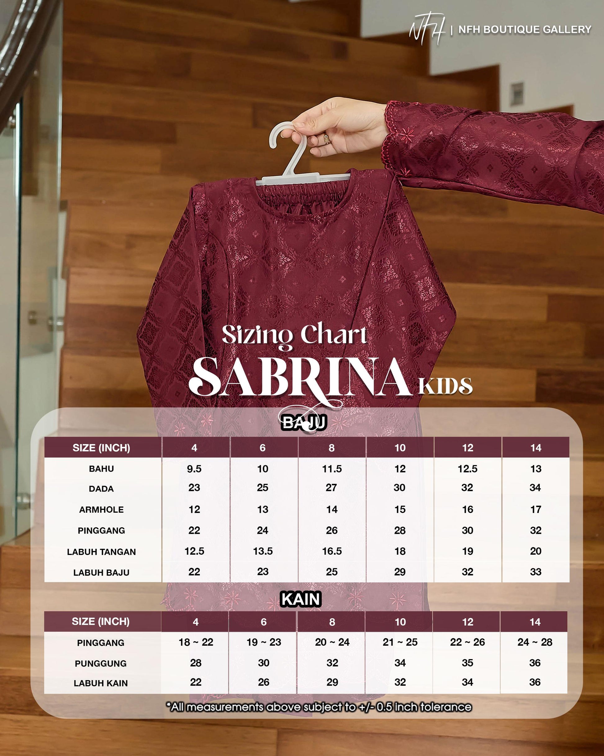 Introducing the Sabrina Kids Kurung, the perfect outfit for your little one! Made from high-quality Jacquard material, it features a shimmery woven pattern and intricate embroidery that will make your child stand out. Dress them in style and comfort with this elegant kurung.