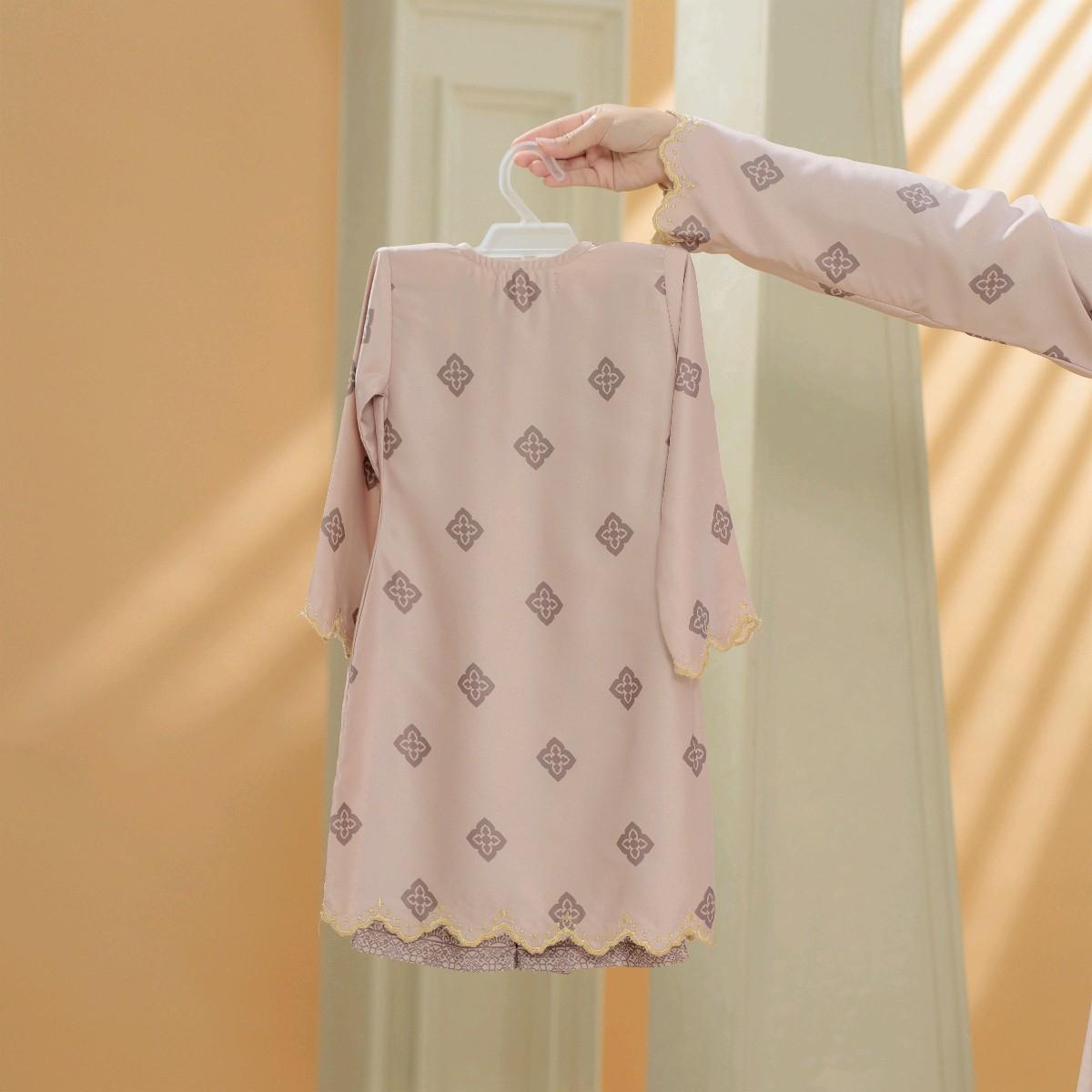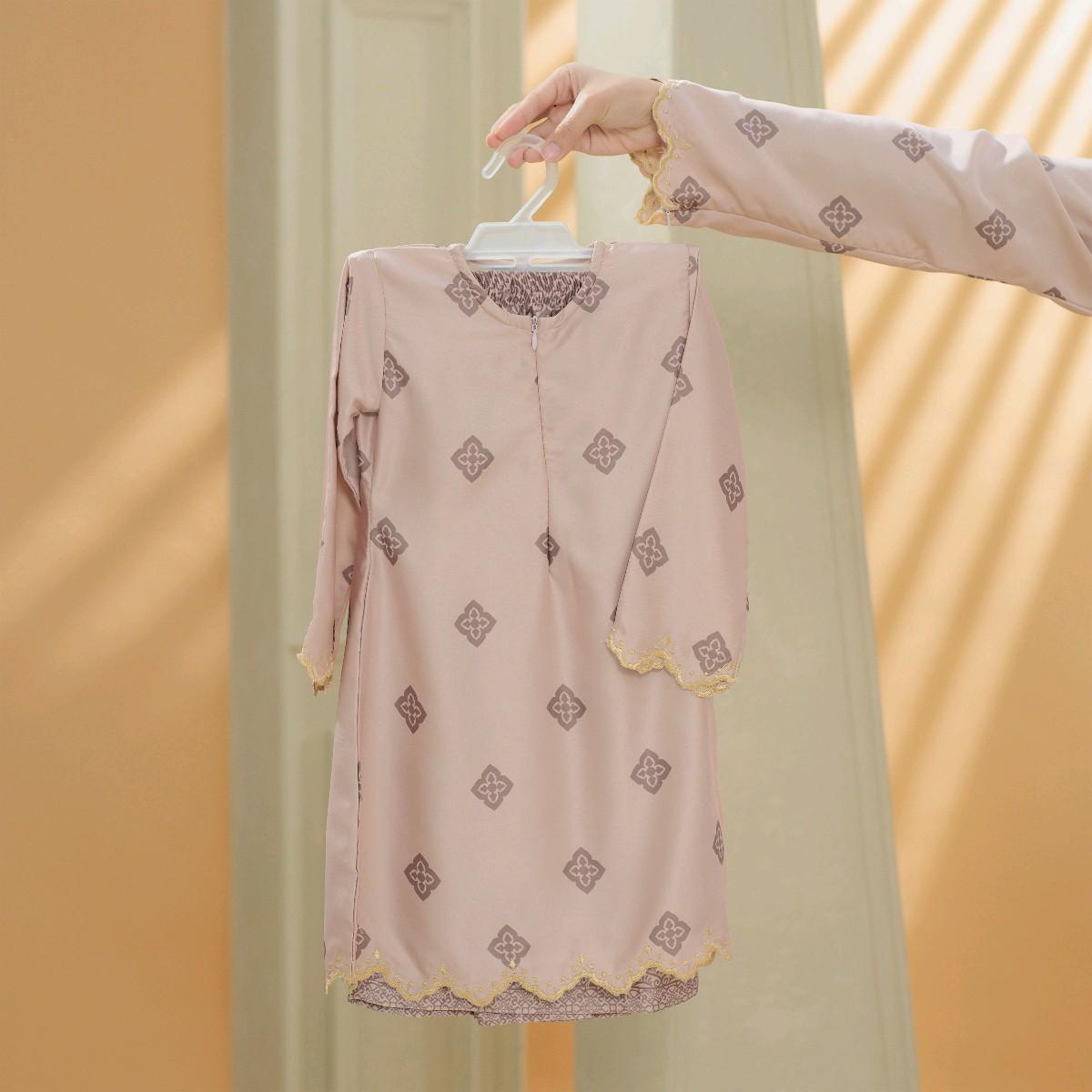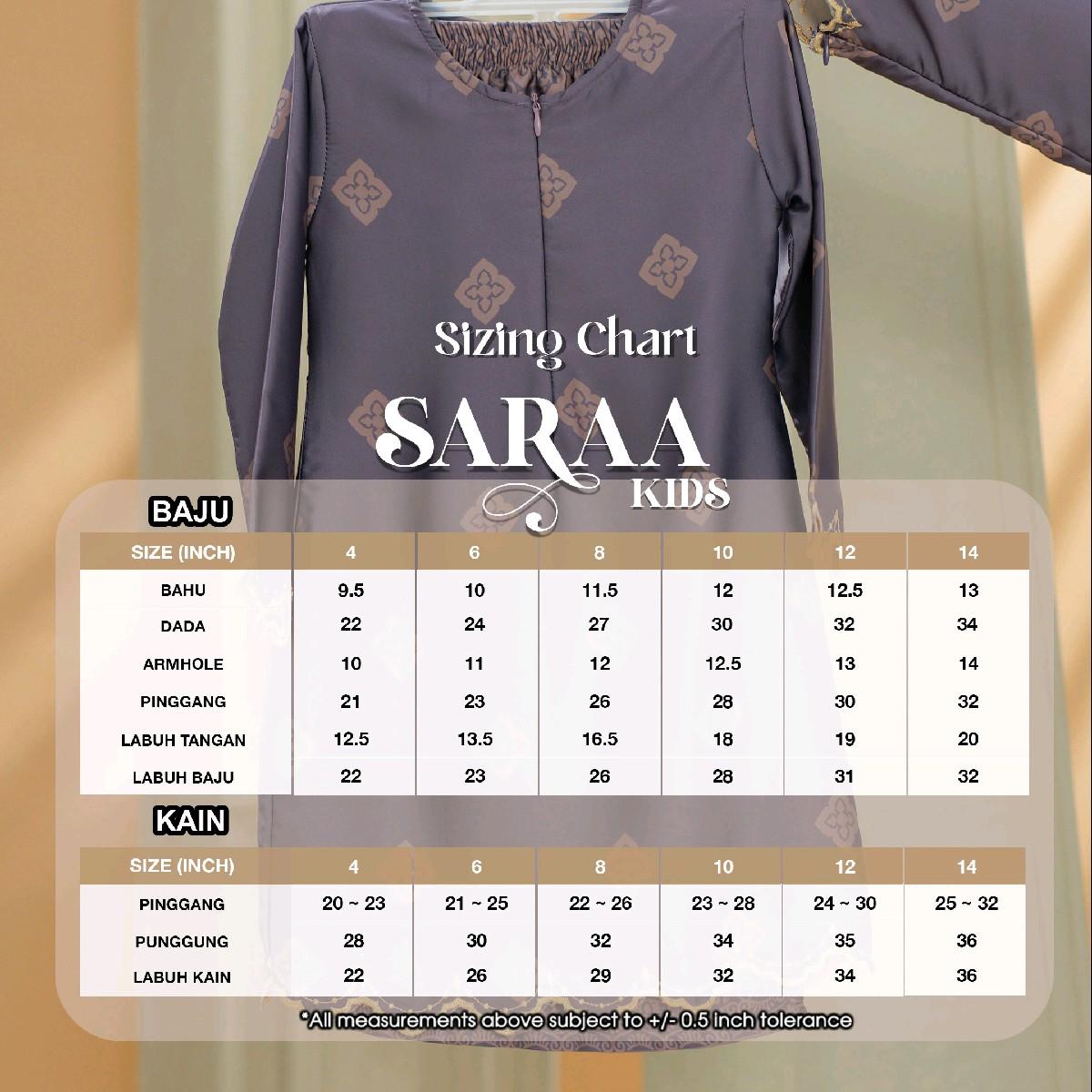 Premium Dubai Silk Saraa Kids Kurung with embroidery, printed patterns, and convenient back zip closure. Ideal for special occasions.
