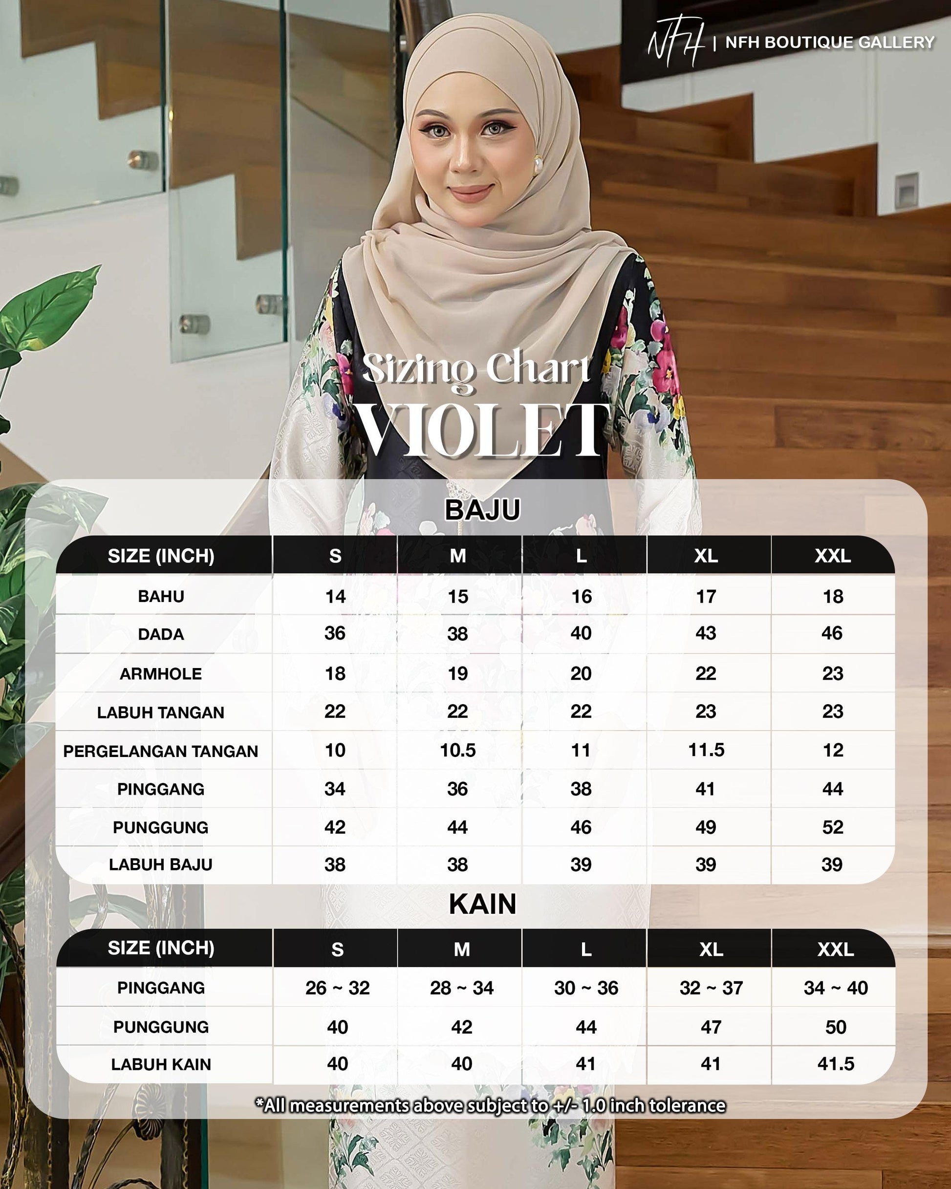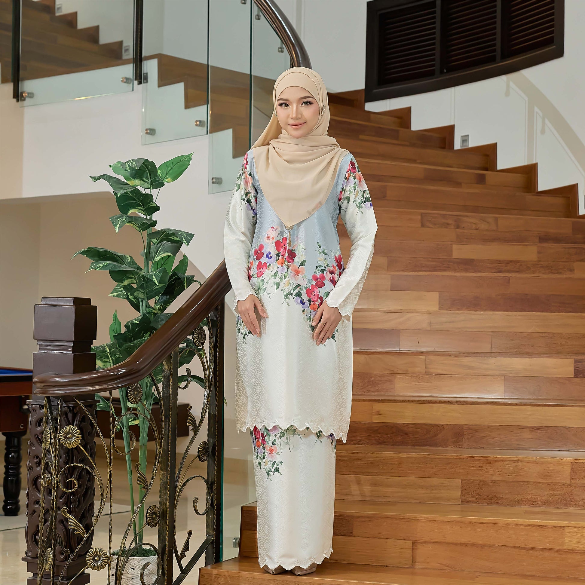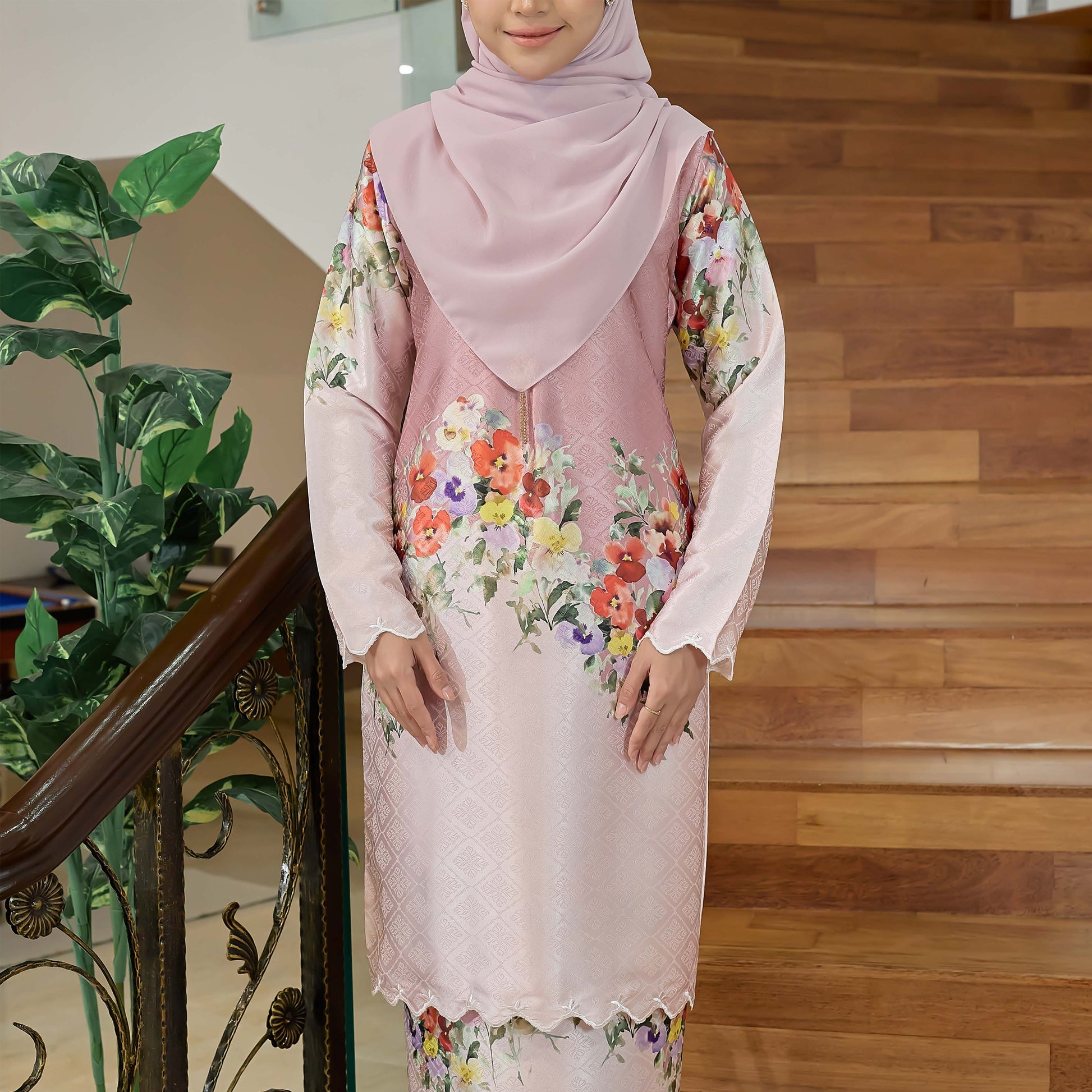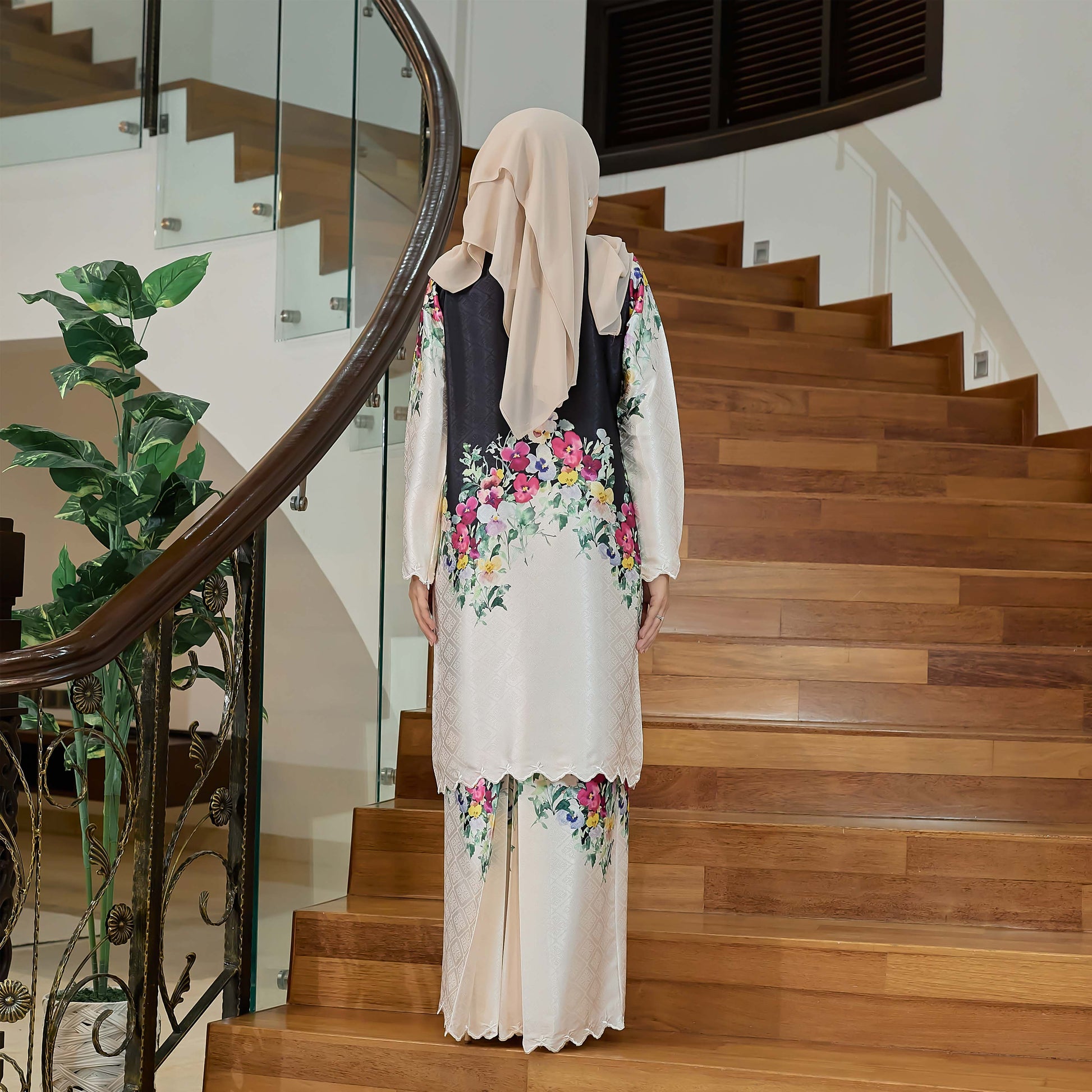 Jacquard kurung with striking floral pattern. Features Susun Belakang skirt, nursing-friendly chest zip, and wudhu-friendly wrist zips. Demands attention with its shimmery details and fearless style.