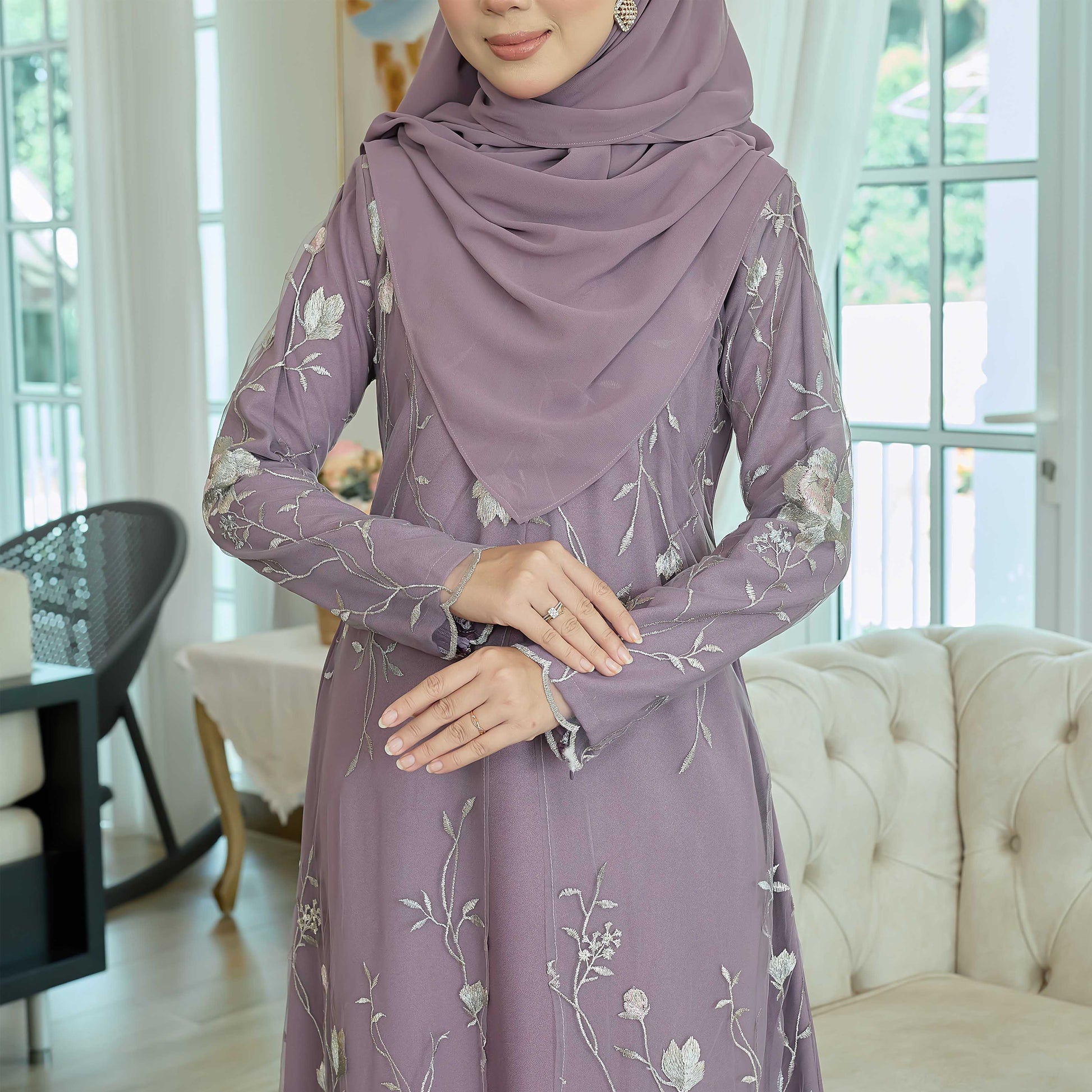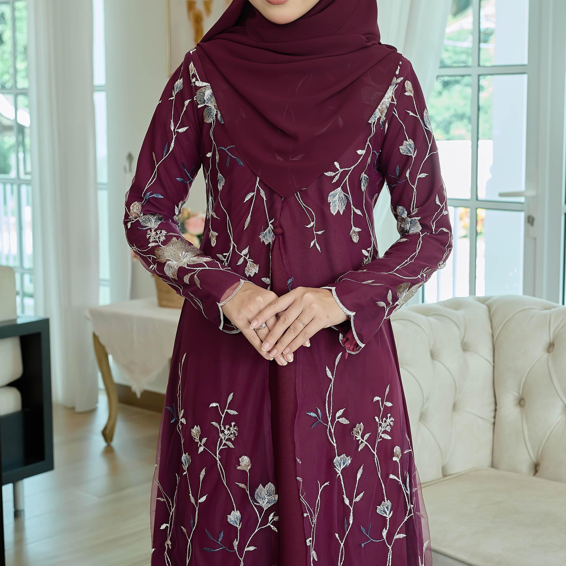 Unleash your adventurous spirit with the Yarra Jubah! Crafted with high-quality Como Crepe and adorned with delicate floral embroidery lace, this cardigan-style piece will take you on a journey of boldness and confidence. Dare to stand out in this unique and stylish garment.